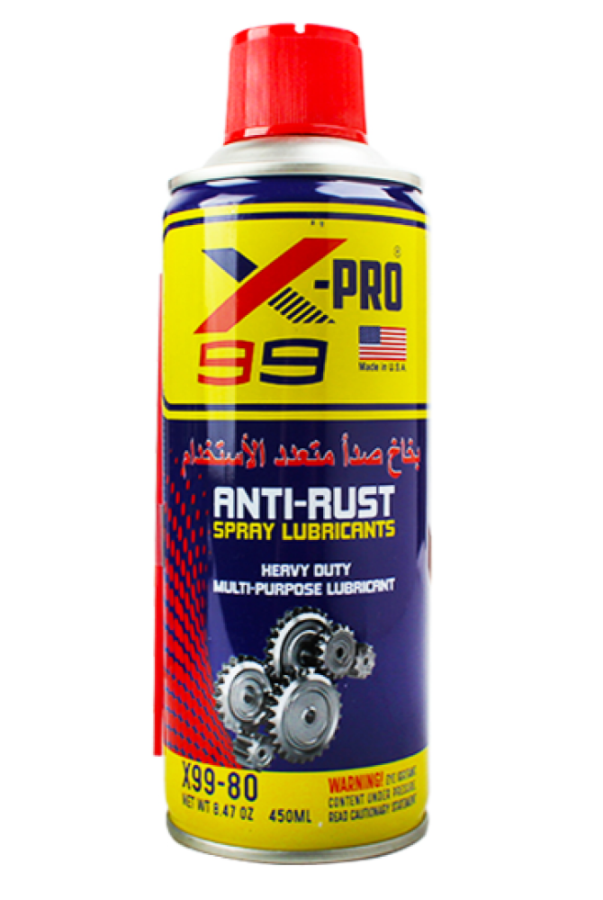 - حماية فعالة: يساعد بخاخ مزيل صدأ X99-80 في حماية المعدات والأدوات من التأثيرات الضارة للصدأ، مما يمدد عمرها ويقلل من تكاليف الصيانة.