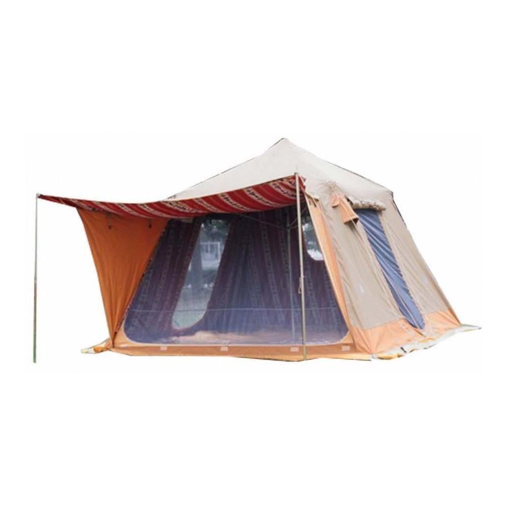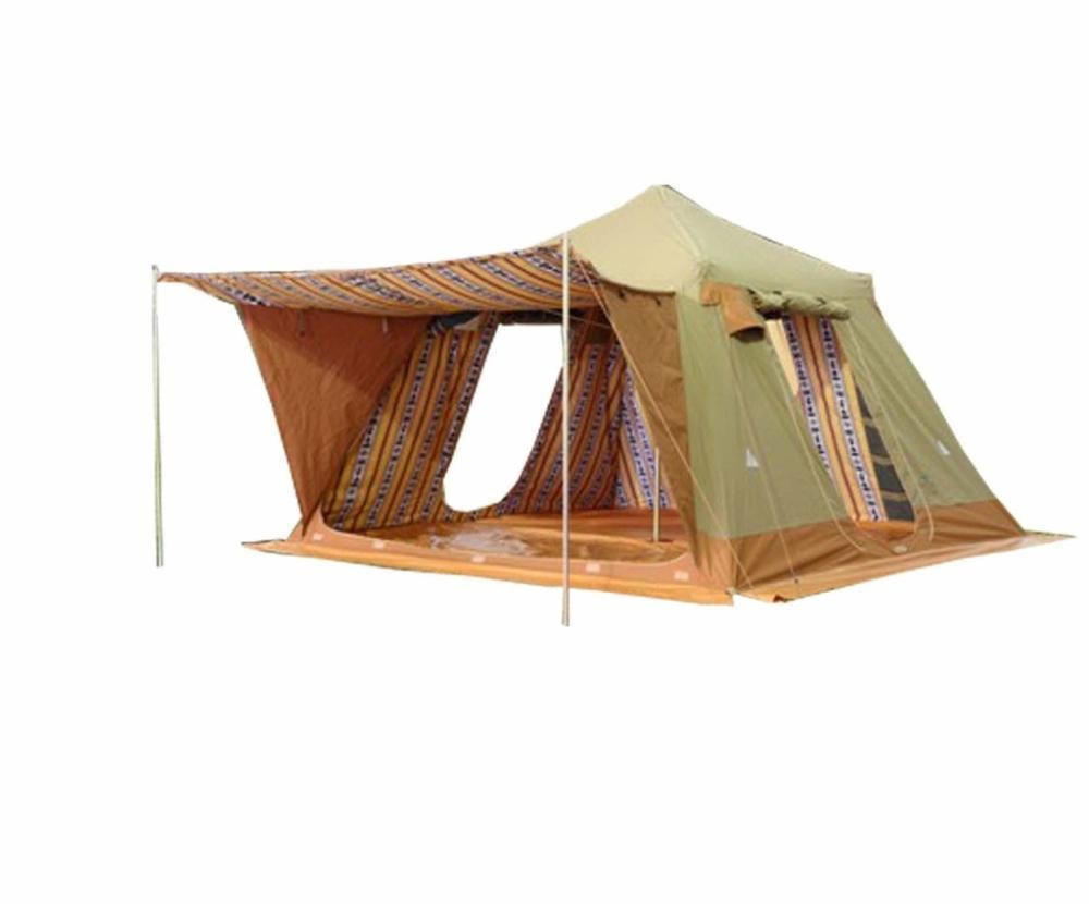 تم تصنيع الخيمة من قماش قطني وبوليستر، مما يوفر متانة عالية وراحة أثناء الاستخدام. الطبقات المزدوجة تعزز من عزل الحرارة وتحميك من العوامل الجوية.