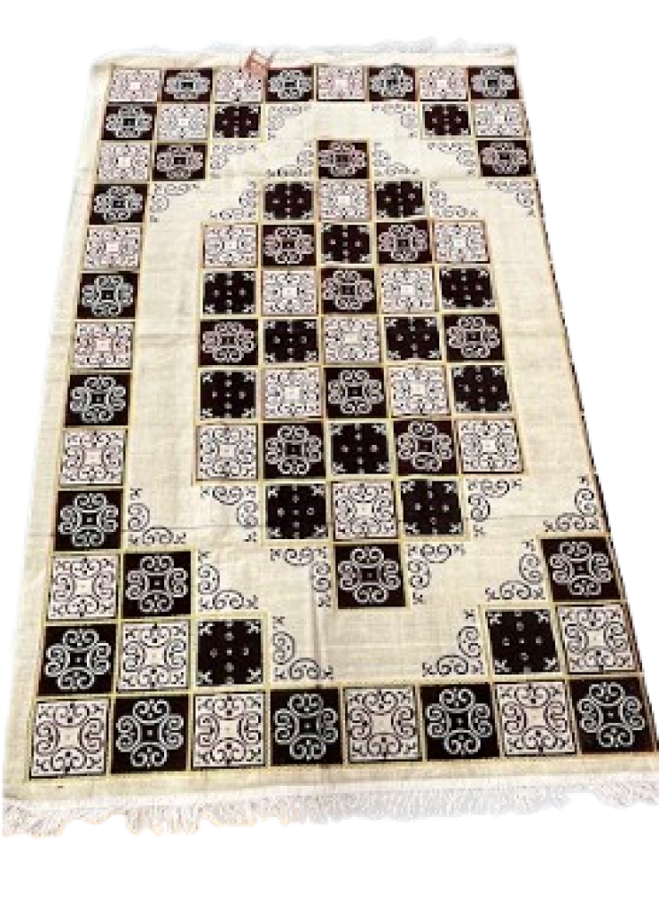 تتضمن الفرشة أيضاً حوافاً مزينة بشراشيب تضيف لمسة من الأناقة، مما يجعلها ليست مجرد فرشة، بل قطعة فنية تعكس ذوقك الرفيع.